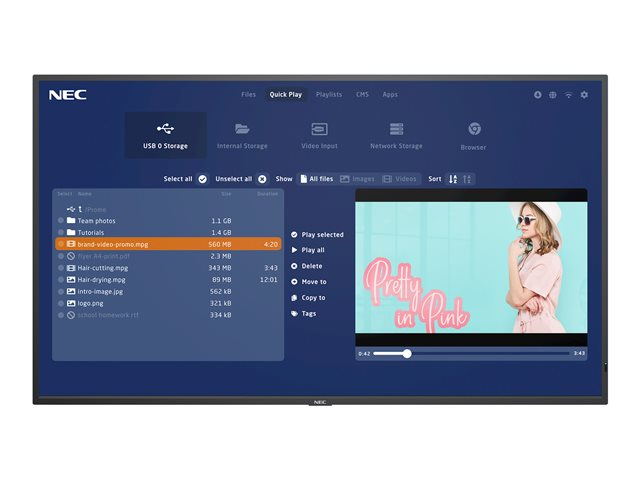 NEC MultiSync M491-MPi4 - 49" Diagonal klass M Series LED-bakgrundsbelyst LCD-skärm - digital skyltning - 4K UHD (2160p) 3840 x 2160 - HDR - kantbelysning - svart, pantone 426M 60005381