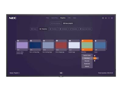 EgenskaperARC (Aspect Ratio Control), säkerhetslåsuttag (kabellås säljs separat), atomatiskt larm vid e-post, Crestron Connected Compatible, NaViSet Administrator 2, AMX NetLinx support, PJLink, utformad för användning 24/7, ASCII Control Commands, avtagbar logo, funktion som gör vit kopia, fabrikskalibrerad gamma, fabrikskalibrerad intensitet, fabrikskalibrerad RGB, fabrikskalibrerad enhetlighet, fabrikskalibrerad vit punkt, CEC Support, kompatibel med Raspberry Pi Compute Module 4, schemalagd timer