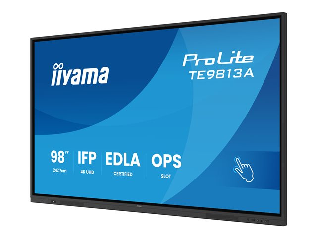 | Egenskaper | Zero-Gap Air Bonding, 88 % ljustransmittans, 10-bit (8-bit + Hi-FRC), PureTouch-IR+ teknik, Palm Rejection, integrerad iiWare 21E programvara, OSD nyckellås, blåljusreducering, flimmerfri teknologi, MTBF 50000 timmar, 200 Hz skanningsfrekvens, iiyama Device management System (DMS), +/- 1 mm beröringsnoggrannhet |
