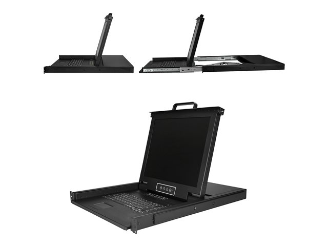 StarTech.com 16-ports rackmonterad KVM-konsol med 1,8 m kablar - Integrerad KVM-switch med 17-tums LCD-skärm - 1U LCD KVM-låda - OSD KVM - Hållbar 50.000 MTBF - USB + VGA-support - KVM-konsol med omkopplare för tangentbord/video/mus - 16 portar - PS/2, USB - 17" - kan monteras i rack - 1280 x 1024 @ 60 Hz - 250 cd/m² - 1000:1 - 5 ms - VGA - svart - 1U