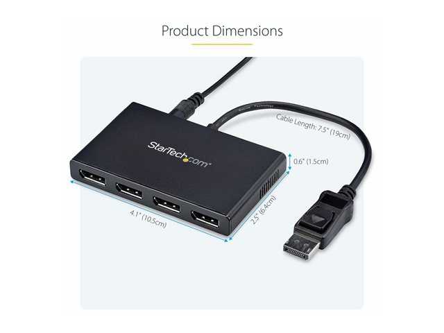 StarTech.com 4-ports multi-bildskärmsadapter - DisplayPort 1.2 MST-hubb - 4x 1080p - DisplayPort video-splitter för utökat skrivbordsläge endast på Windows-datorer - DP till fyra DP-skärmar - Linjedelare för video - 4 x DisplayPort - skrivbordsmodell - för P/N: SV231DPU34K, SVA5N3NEUA