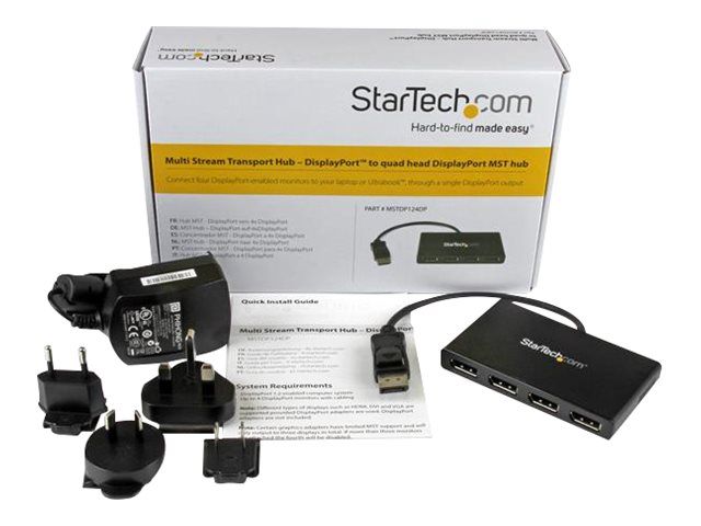 StarTech.com 4-ports multi-bildskärmsadapter - DisplayPort 1.2 MST-hubb - 4x 1080p - DisplayPort video-splitter för utökat skrivbordsläge endast på Windows-datorer - DP till fyra DP-skärmar - Linjedelare för video - 4 x DisplayPort - skrivbordsmodell - för P/N: SV231DPU34K, SVA5N3NEUA MSTDP124DP