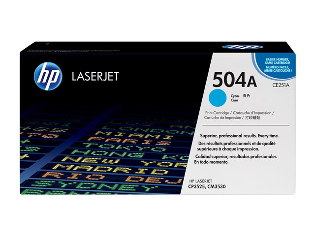 HP 504A - Cyan - original - LaserJet - tonerkassett (CE251A) - för Color LaserJet CM3530 MFP, CM3530fs MFP, CP3525, CP3525dn, CP3525n, CP3525x