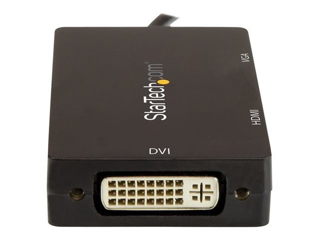 StarTech.com USB-C-videoadapter med flera portar - 3-i-1 - 4K 30Hz - svart - Videokort - USB-C hane till HD-15 (VGA), DVI-I, HDMI hona - 15 cm - svart - aktiv omvandlare, 4K 30 Hz (3840 x 2160) stöd (HDMI), 1920 x 1200 (WUXGA) stöd 60 Hz (DVI och VGA)