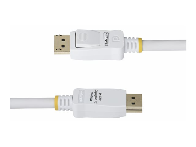 StarTech.com 10ft White VESA Certified DisplayPort 1.2 Cable with Latches - DisplayPort-kabel - DisplayPort (hane) spärrad till DisplayPort (hane) spärrad - DisplayPort 1.2 - 3 m - halogenfri, passiv, 4K60Hz stöd, 1080p stöd 240 Hz, 2K144Hz stöd - vit