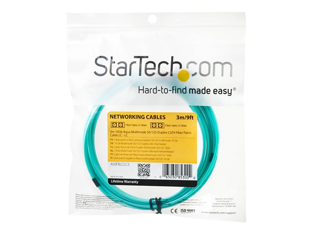 StarTech.com 3m Fiber Optic Cable - 10 Gb Aqua - Multimode Duplex 50/125 - LSZH - LC/LC - OM3 - LC to LC Fiber Patch Cable - Patch-kabel - LC multiläge (hane) till LC multiläge (hane) - 3 m - 3 m - fiberoptisk - duplex - 50/125 mikron - OM3 - halogenfri - havsblå - för P/N: J9152AST, MASFP10GBSR, SFP10GBLRMST, SFP10GBSRST, SFP10GSRSST, SFP10GSRXST
