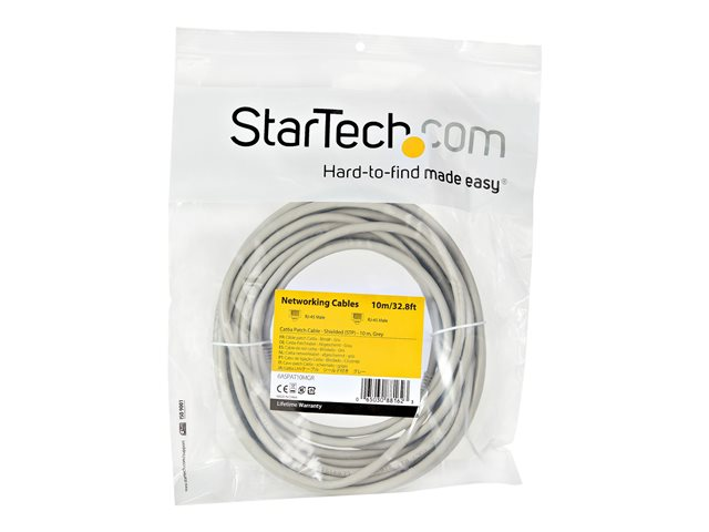 StarTech.com cat6a ethernet-kabel - Patch-kabel - RJ-45 (hane) till RJ-45 (hane) - 10 m - STP - CAT 6a - formpressad, hakfri - grå