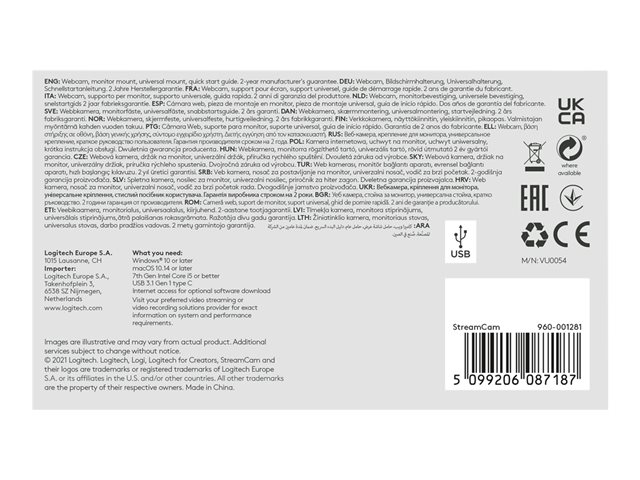 Logitech StreamCam - Livestreamingkamera - färg - 1920 x 1080 - 1080p - ljud - USB-C 3.1 Gen 1 - MJPEG, YUY2