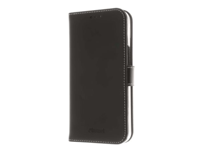 Insmat Exclusive - Vikbart fodral för mobiltelefon - genuint läder, polykarbonat, bomullssömmar, kartong+papper - svart - för Apple iPhone 14 Plus