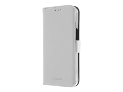 Insmat Exclusive - Vikbart fodral för mobiltelefon - läder, polykarbonat, kartong+papper+aluminiumfolie, bomullssömmar - vit - för Apple iPhone 14 Pro 650-3119