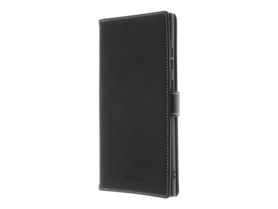 Insmat Exclusive - Vikbart fodral för mobiltelefon - genuint läder, papper, polyuretan, kartong, bomull, aluminiumfolie, brons, termoplastisk polyuretan (TPU) - svart - för Samsung Galaxy S23 Ultra