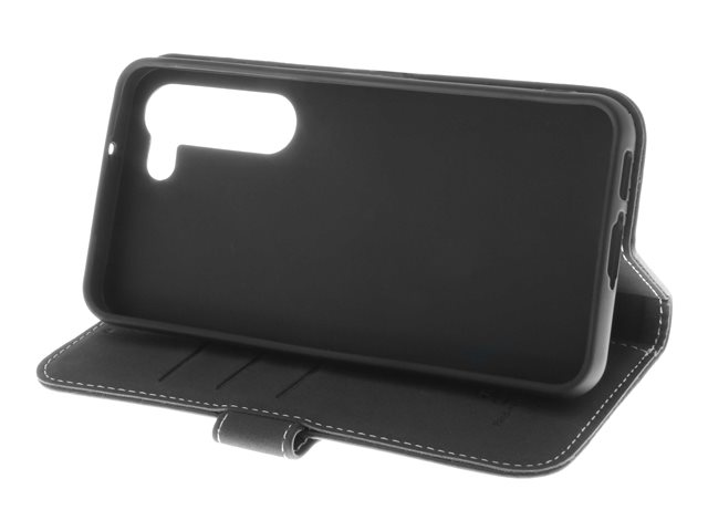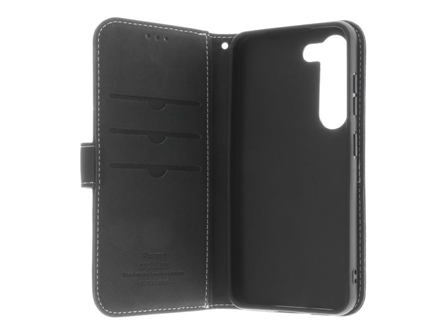 Insmat Exclusive - Vikbart fodral för mobiltelefon - genuint läder, papper, polyuretan, kartong, bomull, aluminiumfolie, brons, termoplastisk polyuretan (TPU) - svart - för Samsung Galaxy S23+