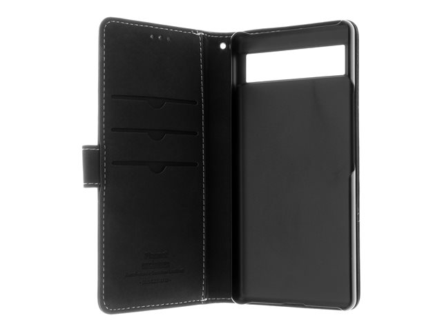 Insmat Exclusive - Vikbart fodral för mobiltelefon - läder, kartong+papper+aluminiumfolie, polykarbonat - svart - för Google Pixel 6a