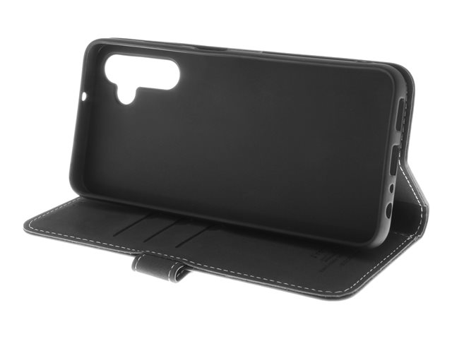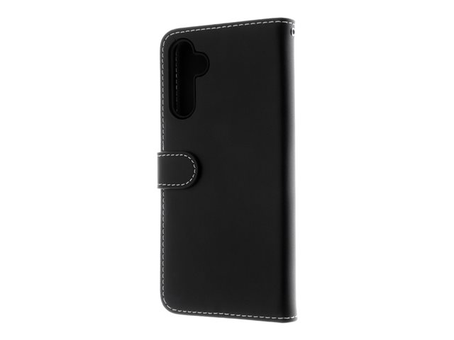 Insmat Exclusive - Vikbart fodral för mobiltelefon - läder, kartong+papper+aluminiumfolie, hållare av termoplastiskt polyuretan (TPU), bomullssömmar - svart - för Samsung Galaxy A25