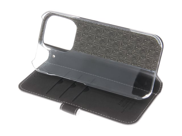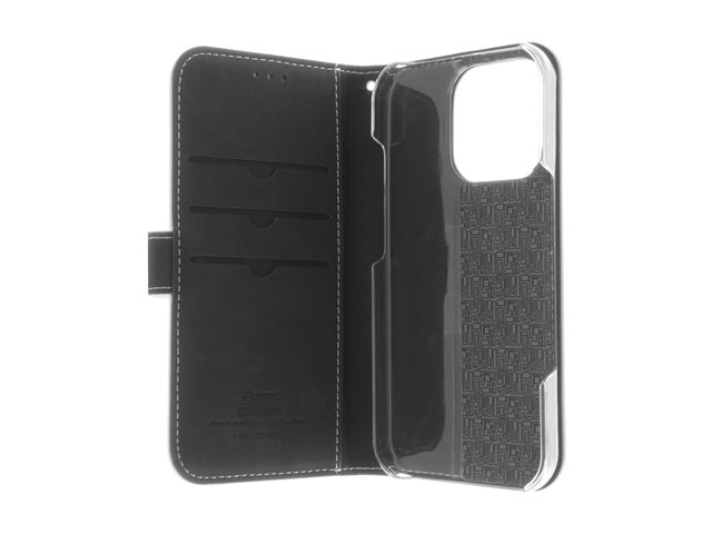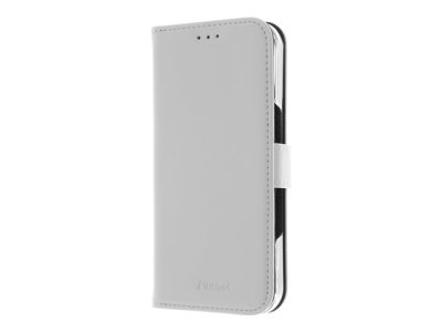 Insmat Exclusive - Vikbart fodral för mobiltelefon - genuint läder, kartong+papper+aluminiumfolie, polykarbonat (PC), bomullssömmar - vit - för Apple iPhone 16 Pro 650-3284