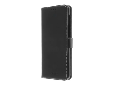 Insmat Exclusive - Vikbart fodral för mobiltelefon - genuint läder, termoplastisk polyuretan (TPU), kartong+papper+aluminiumfolie, bomullssömmar - svart - för Samsung Galaxy A13 650-3063