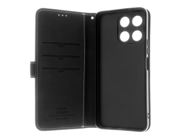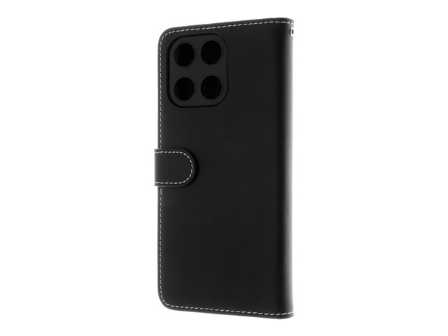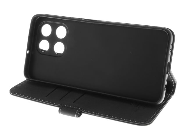 Insmat - Vikbart fodral för mobiltelefon - läder, polykarbonat, kartong+papper+aluminiumfolie, bomullssömmar - svart - för Honor X6a