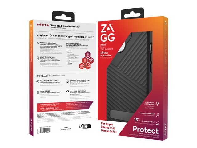 ZAGG Denali Snap - Baksidesskydd för mobiltelefon - robust - med fällbart ställ - MagSafe-kompatibilitet - för Apple iPhone 13, 14, 15