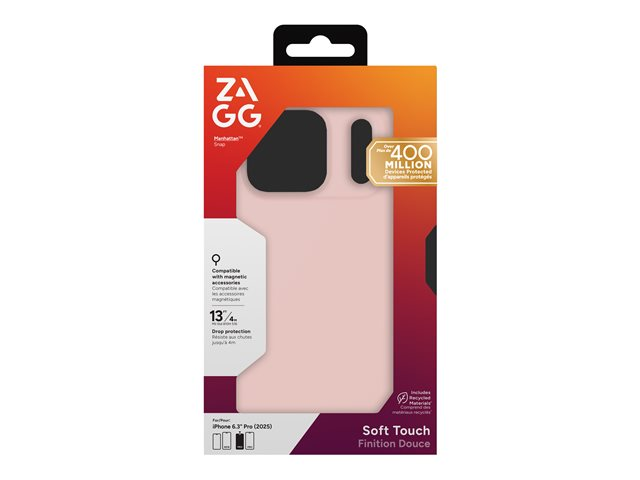 ZAGG Manhattan Snap - Baksidesskydd för mobiltelefon - MagSafe-kompatibilitet - silikon - rosa rouge - för Apple iPhone 17 Pro