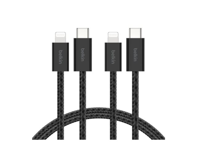 Belkin BoostCharge - Lightning-kabel - USB-C hane till Lightning hane - 1.5 m - MFI-certifierad - svart - snabbladdning (paket om 2)
