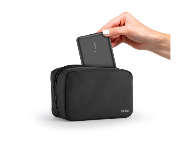 Belkin BoostCharge - Power bank + växelströmsadapter - 20000 mAh - PD - 3 utdatakontakter (USB-C, 2 x USB) - på kabel: USB-C - Storbritannien - med fickfodral med dragkedja