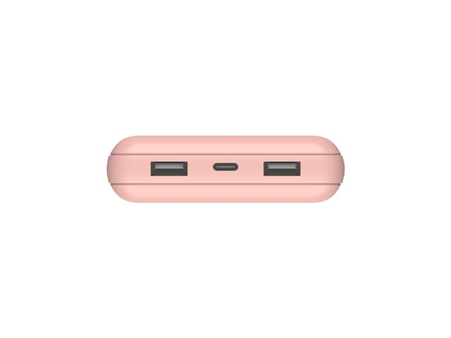 Belkin BoostCharge - Power bank - 20000 mAh - 15 Watt - 3 A - 3 utdatakontakter (24 pin USB-C, 2 x USB) - på kabel: USB-C - guldrosa BPB012BTRG