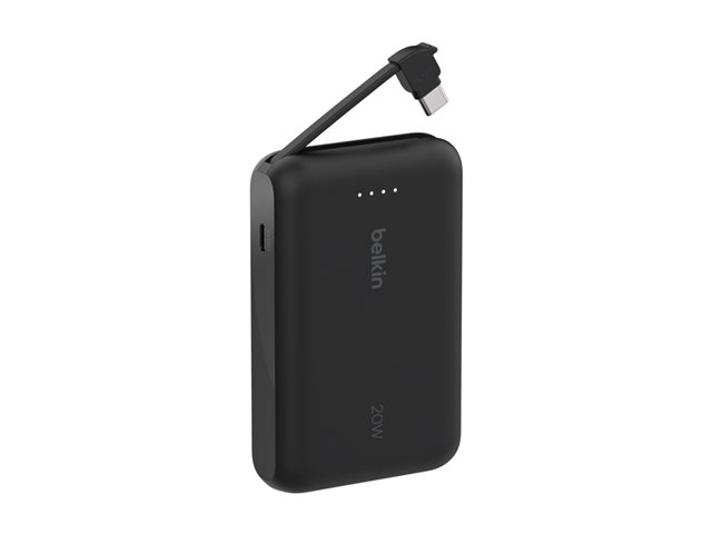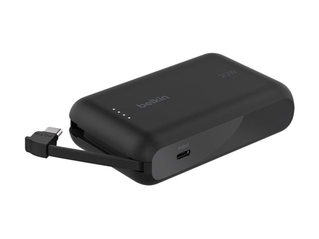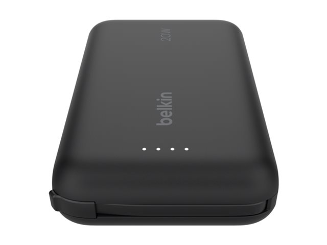 Belkin BoostCharge - Power bank - med integrerad kabel - 10000 mAh - 20 Watt - 3 A - Fast Charge - 2 utdatakontakter (USB-C) - svart