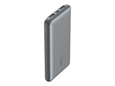 Belkin BoostCharge - Strömförsörjningsbank - 10000 mAh - 15 Watt - 3 A - 3 utdatakontakter (2 x USB, 24 pin USB-C) - på kabel: USB-C - rymdgrå