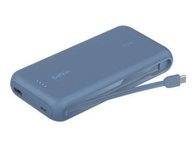 Belkin BoostCharge - Strömförsörjningsbank - med integrerad kabel - 20000 mAh - 30 Watt - PD - 3 utdatakontakter (2 x USB-C, USB) - blå