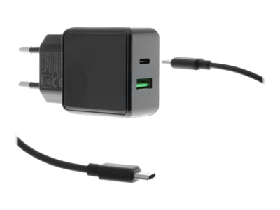 Insmat TRIDON Series Dual USB Travel Charger - Strömadapter - 20 Watt - 3 A (24 pin USB-C) - svart