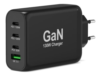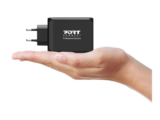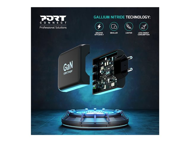 PORT Connect - Strömadapter - GaN - 130 Watt - 5 A - PD, QC 3.0 - 4 utdatakontakter (USB typ A, 3 x USB-C) - på kabel: USB-C - Europa