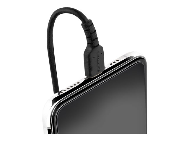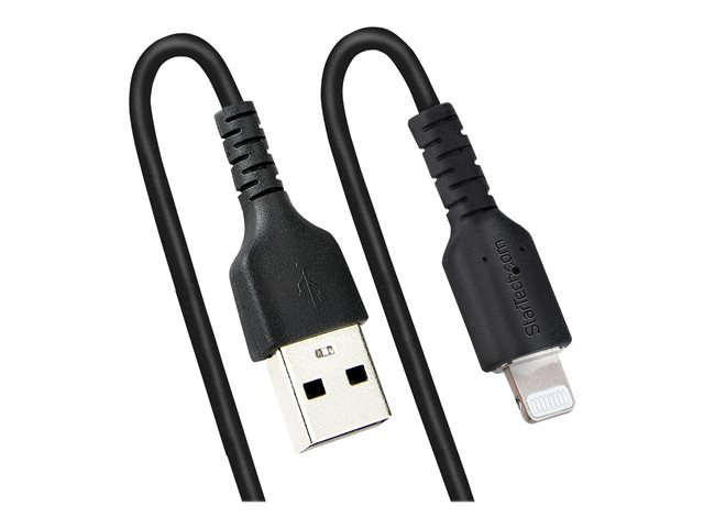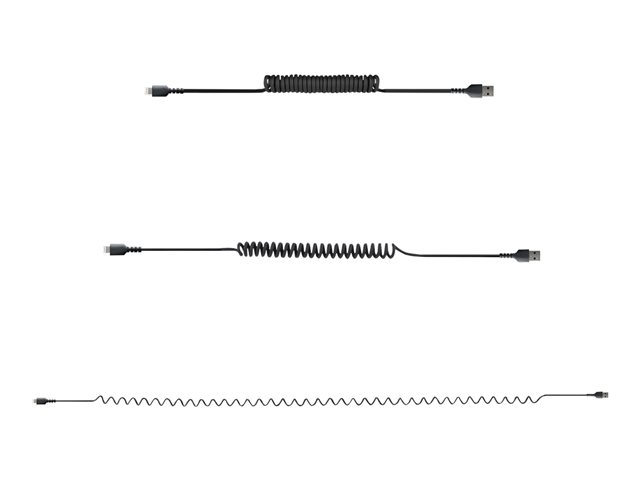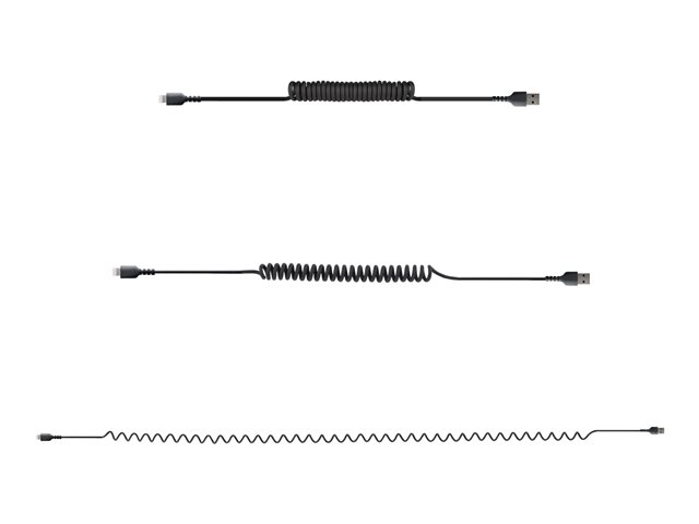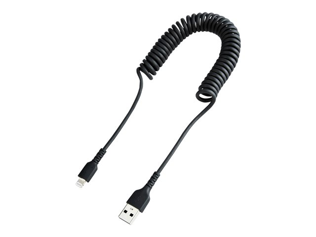 StarTech.com 1 m USB till Lightning-kabel, MFi-certifierad, iPhone-spiralladdarkabel, svart, TPE-mantel med slitstark aramidfiber, kraftig Lightning-spiralkabel - Lightning-kabel - USB hane till Lightning hane - 1 m - svart - lindad RUSB2ALT1MBC