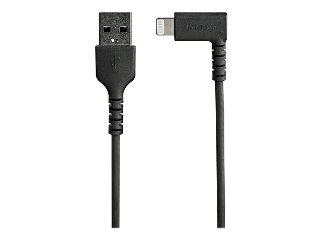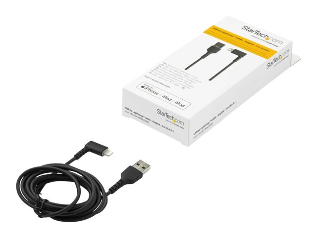 StarTech.com 2m tålig USB-A till Blixtkabel - svart 90° högervinkad, robust aramidfiber USB typ A till Blixtuppladdning/synkron sladd - Apple MFi-certifierad - iPhone - Lightning-kabel - Lightning hane vinklad till USB hane - 2 m - dubbelt skärmad - svart