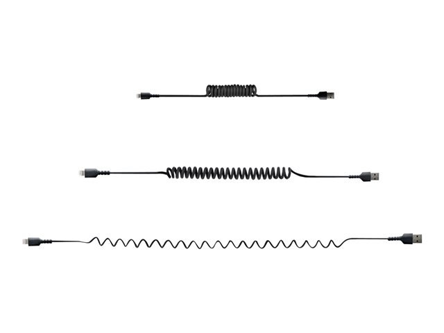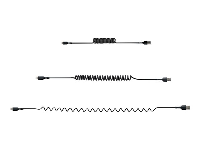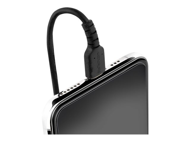 StarTech.com 50 cm USB till Lightning-kabel, MFi-certifierad, iPhone-laddarkabel, svart, TPE-mantel med slitstark aramidfiber, kraftig Lightning-spiralkabel - Lightning-kabel - USB hane till Lightning hane - 50 cm - svart - lindad