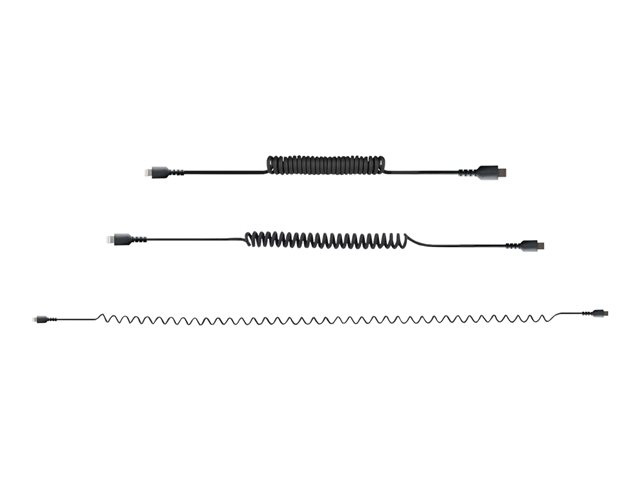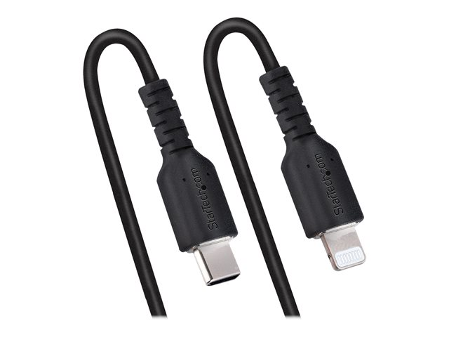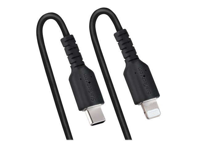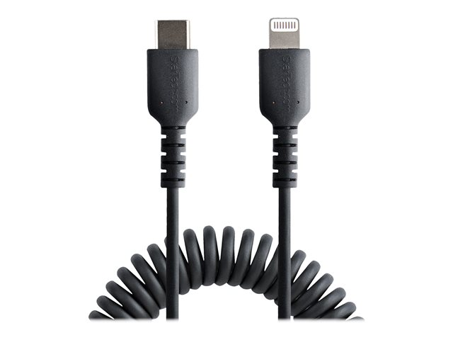 StarTech.com USB C till Lightning-kabel 1 m, MFi-certifierad, iPhone-spiralladdarkabel, svart, TPE-mantel med slitstark aramidfiber, kraftig Lightning-spiralkabel - Lightning-kabel - USB-C hane till Lightning hane - 1 m - svart - lindad