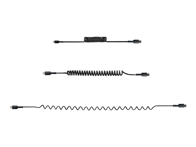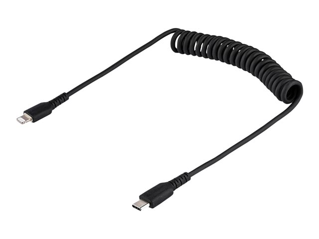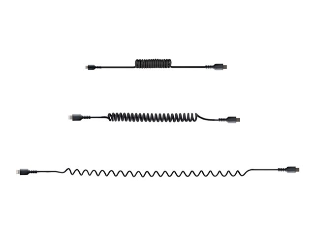 StarTech.com USB C till Lightning-kabel 50 cm, MFi-certifierad, iPhone-spiralladdarkabel, svart, TPE-mantel med slitstark aramidfiber, kraftig Lightning-spiralkabel - Lightning-kabel - USB-C hane till Lightning hane - 50 cm - svart - lindad