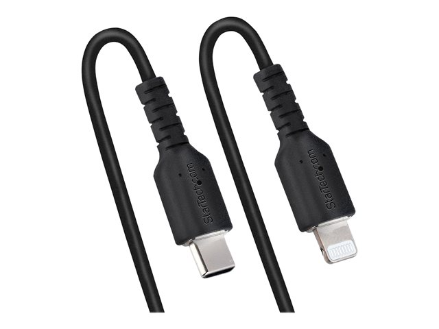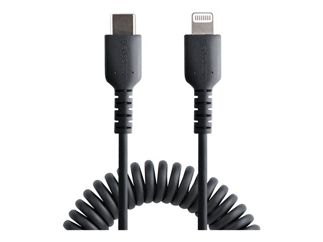 StarTech.com USB C till Lightning-kabel 50 cm, MFi-certifierad, iPhone-spiralladdarkabel, svart, TPE-mantel med slitstark aramidfiber, kraftig Lightning-spiralkabel - Lightning-kabel - USB-C hane till Lightning hane - 50 cm - svart - lindad RUSB2CLT50CMBC
