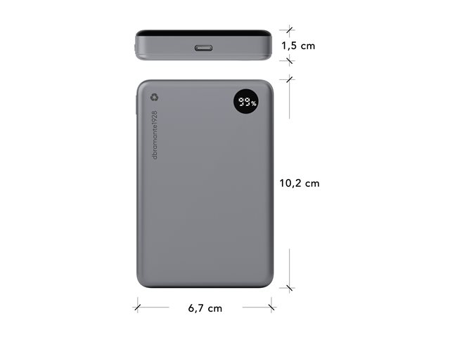 dbramante1928 re-charge - Power bank - 10000 mAh - 38.5 Wh - 20 Watt - 3 A - 2 utdatakontakter (magnetisk, 24 pin USB-C) - grå