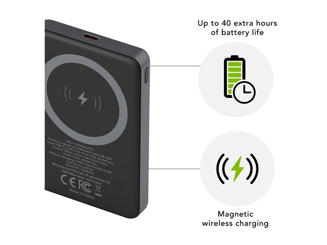 | Strömenhetens driftlägen | Trådlös laddning - 5/7.5/10/15 W USB-C - 20 W - 5/9/12 V - 3/2.22/1.67 A |