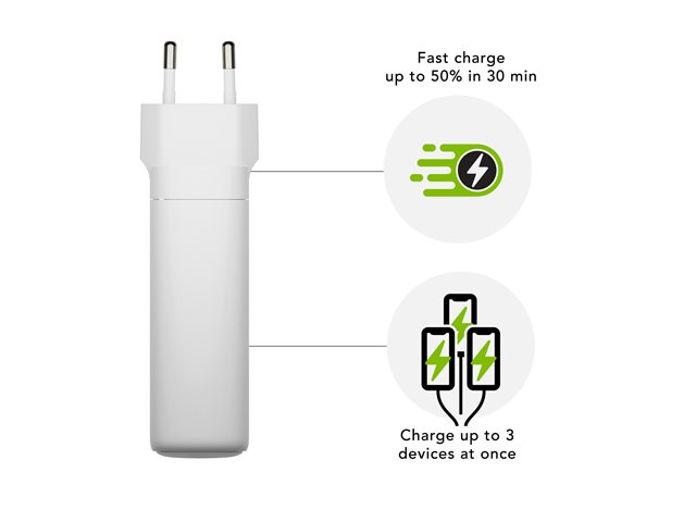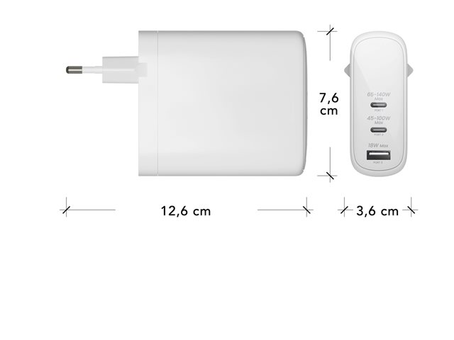 dbramante1928 re-charge - Strömadapter - 140 Watt - Strömmatning 3.1 - 3 utdatakontakter (USB-C, USB) - vit - Europa