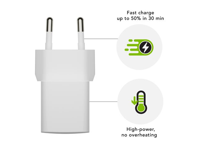 | Egenskaper | Överhettningsskydd, kompakt design, snabbladdning, GaN Technology, 100 % återvinningsbar |