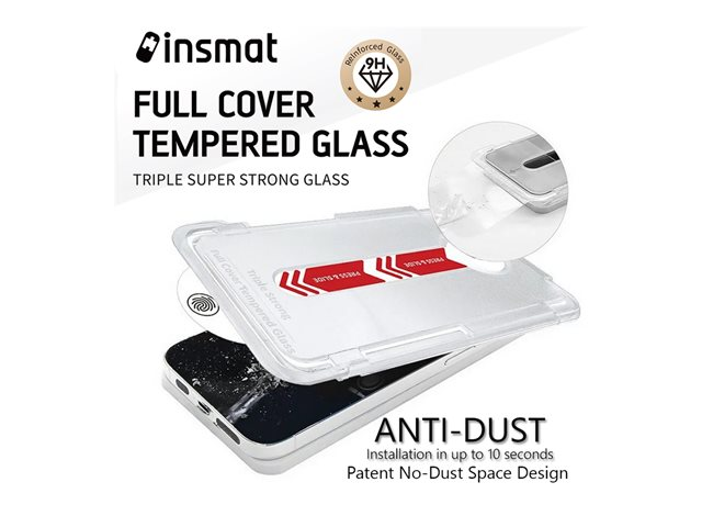 Insmat - Skärmskydd för mobiltelefon - lätt och anti-damm, super full täckning - glas - ramfärg svart - för Apple iPhone 13, 14, 14 Pro, 16e