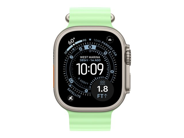 Apple - Band för smart klocka - 49 mm, naturlig titanfinish - 130 - 200 mm - neongrön - för Watch Hermès Series 9, SE 3, Series 10, Series 11, Series 8, Series 9, Ultra 2, Ultra 3