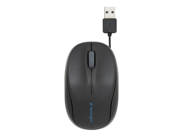 Kensington Pro Fit Retractable Mobile - Mus - optisk - 3 knappar - kabelansluten - USB - svart