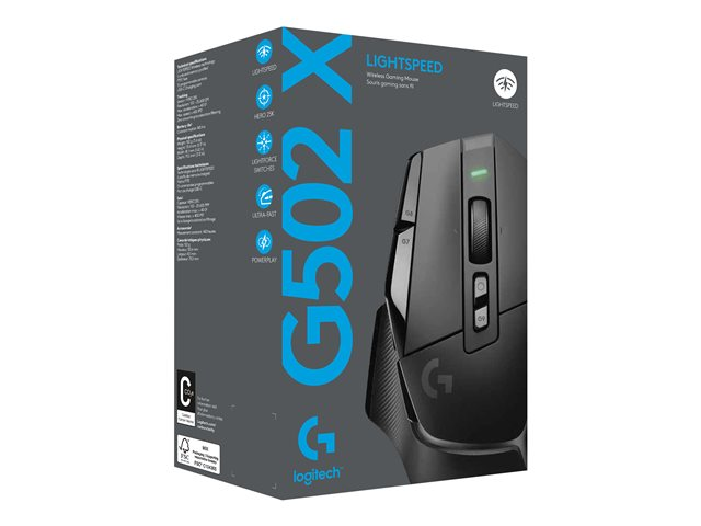 Logitech G G502 X LIGHTSPEED - Mus - optisk - 8 knappar - trådlös - 2.4 GHz - USB Logitech LIGHTSPEED-mottagare - svart 910-006180