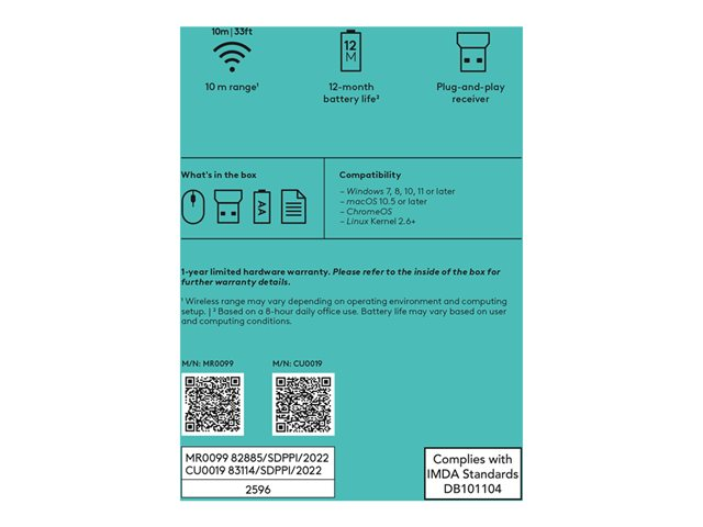 | Inkluderade tillbehör | USB-mottagare, 1 AA-batteri |