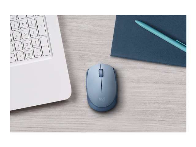 Logitech M171 - Mus - höger- och vänsterhänta - optisk - 3 knappar - trådlös - 2.4 GHz - trådlös USB-mottagare - blå/grå
