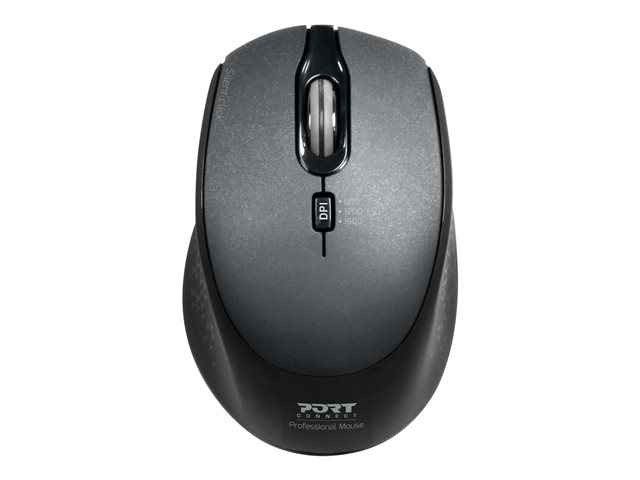 PORT Connect SILENT - Mus - optisk - trådlös - 2.4 GHz - USB/USB-C trådlösa mottagare - svart