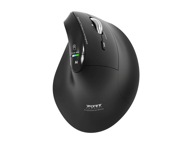 PORT - Mus - ergonomisk - optisk - 6 knappar - trådlös - 2.4 GHz, Bluetooth - trådlös USB-mottagare - svart