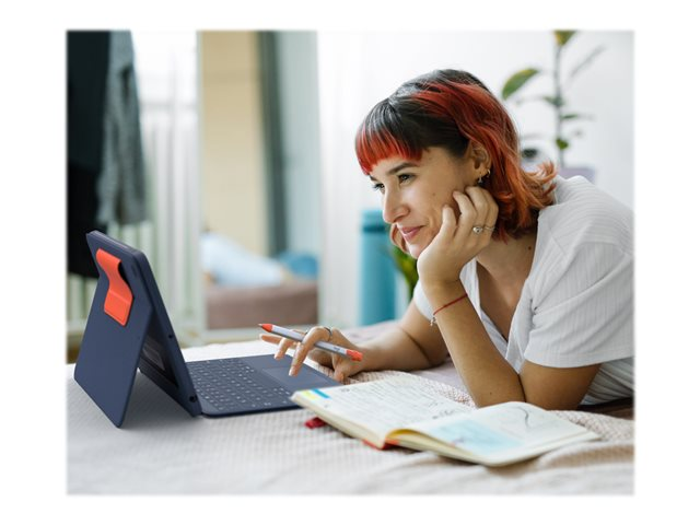 Logitech Rugged Combo 3 Touch for Education - Tangentbord och foliefodral - med pekdyna - Apple Smart connector - QWERTZ - schweizisk - klassisk blå - universitet - för Apple 10.2-inch iPad (7:e generation, 8:e generation, 9:e generation)